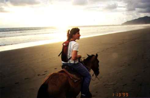 Rachel pondering why Eric is having so much trouble horseback riding..